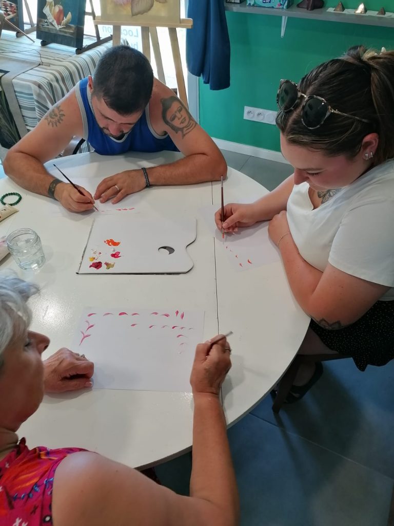 Ainsi quand Mme Latrille est repartie, enrichie par cette nouvelle rencontre nous avons eu le sentiment que la notion de “Peinture pour les Nuls” était une manière déguisée de faire de l’instant présent un moment magique de découverte de soi et de création.