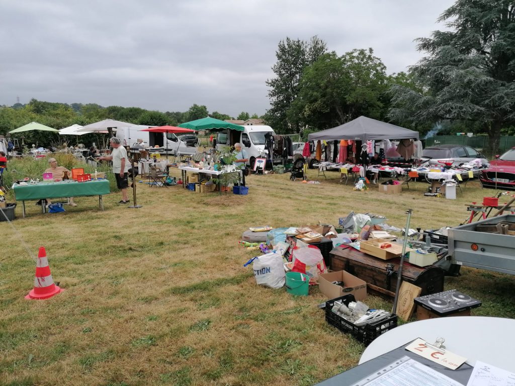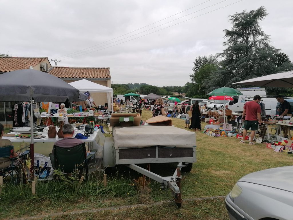 Une vingtaine d’exposants, de 8 à 84 ans, plus de 115 mètres linéaires de stands (ferraille, bois, fleurs, vêtements, jouets, livres, etc…), une buvette, des animations, une tombola avec plus de 40 lots (offerts par des commerçants de Gironde-sur-Dropt, La Réole, Langon, Casteljaloux,…) ainsi qu’une ambiance conviviale ont contribué à la réussite de cette journée sous le soleil. Ce n’était pas seulement une occasion d’échanges d’objets divers et variés mais surtout un espace de liens humains, de rencontres, de discussions… Autour d’un café ou d’une boisson, des retrouvailles ou de nouvelles connexions, une animation de Neuro-Gym, un atelier de découverte de peinture pour les nuls. Un grand merci aux quelques bénévoles impliqués dans le succès de cet événement local.
